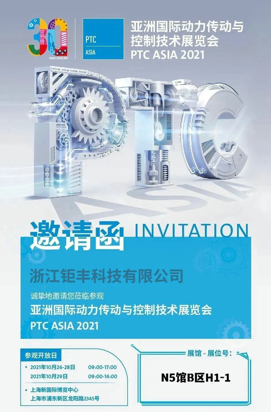 Maraming salamat sa iyong patuloy na suporta at pagmamahal kay Jufeng! Ang PTC ASIA Asia International Power Transmission and Control Technology Exhibition ay magsisimula sa Shanghai New International Expo Center sa Oktubre 26, 2021! Sa oras na iyon, hihintayin ka namin sa booth H1-1, Area B, Hall N5, inaabangan ang iyong pagbisita at patnubay, at inaabangan ang pakikipagtulungan sa iyo upang manalo sa hinaharap!